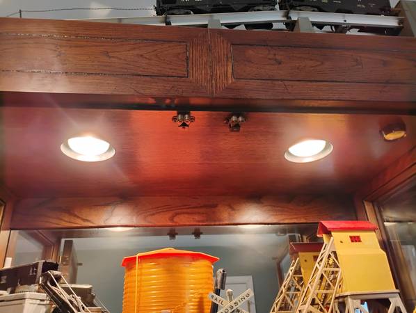 Solid oak wood and brass hardware curio cabinet with spotlights. These are extremely well made and sold for over 8 hundred dollars new. Asking 375 each and will only sell as a pair.